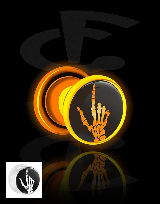 Ruuvattava tunneli (akryyli, valkoinen) kanssa LED-lisäosa ja luurankokäsi-design