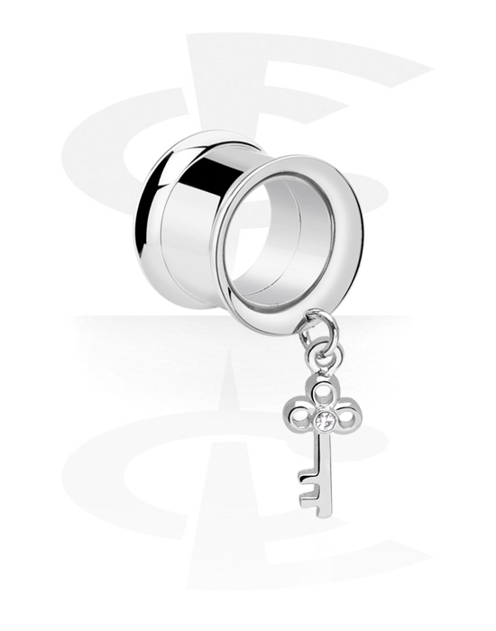 Kaksinkertainen flared-tunneli (kirurginen teräs, hopea, kiiltävä pinta) kanssa avainriipus ja kristallikivi