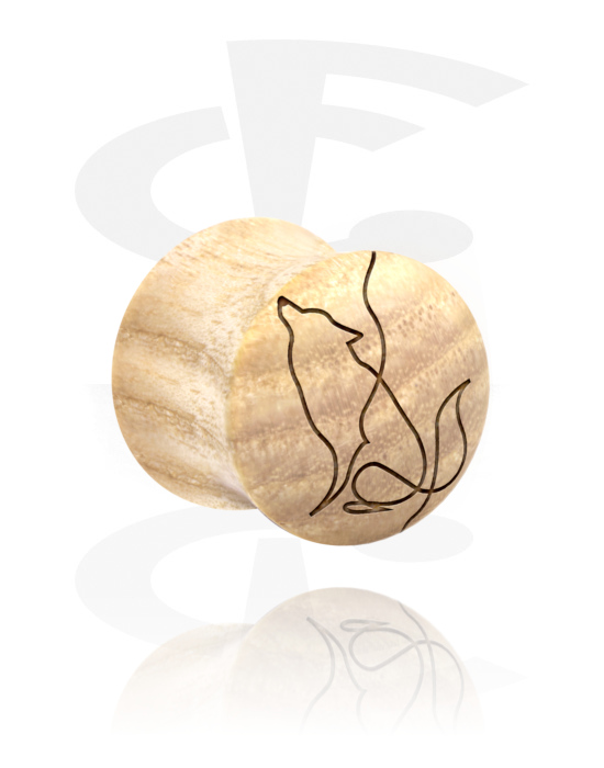 Kaksinkertainen flared-plugi (puu) kanssa One line -susidesign -laserkaiverrus