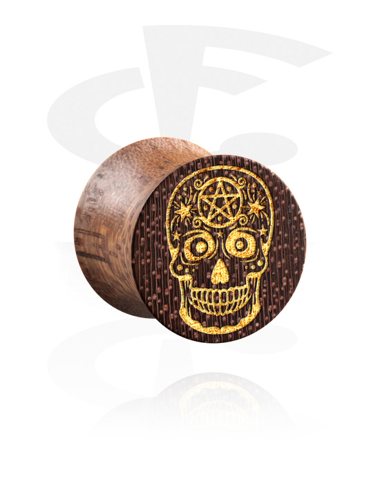Kaksinkertainen flared-plugi (puu) kanssa sokerikallo "Dia de Los Muertos" -design
