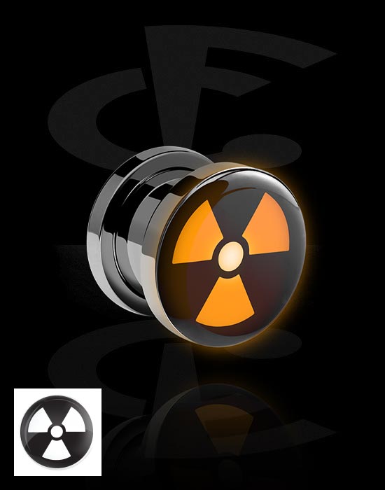Ruuvattava tunneli (kirurginen teräs, musta, kiiltävä pinta) kanssa LED-lisäosa ja säteilyvaroitusmerkki