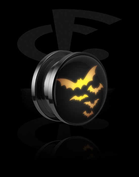 Ruuvattava tunneli (kirurginen teräs, musta, kiiltävä pinta) kanssa LED-lisäosa ja lepakkodesign
