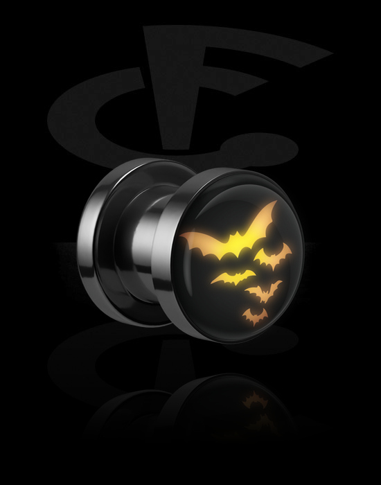 Ruuvattava tunneli (kirurginen teräs, musta, kiiltävä pinta) kanssa LED-lisäosa ja lepakkodesign