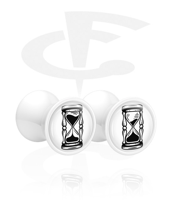 1 pari kaksinkertaisia flared-plugeja (akryyli, valkoinen) kanssa tiimalasidesign