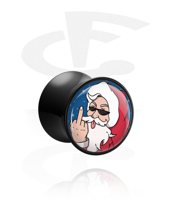Kaksinkertainen flared-plugi (akryyli, musta) kanssa Ilkeä joulupukki -design