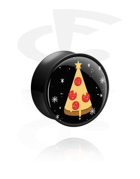 Kaksinkertainen flared-plugi (akryyli, musta) kanssa "Pizzajoulukuusi"-joulukuva