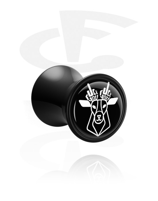 Kaksinkertainen flared-plugi (akryyli, musta) kanssa peura-design ja keskisormi