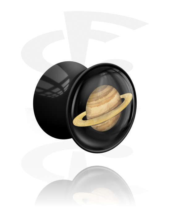 Kaksinkertainen flared-plugi (akryyli, musta) kanssa Saturnus-planeettadesign