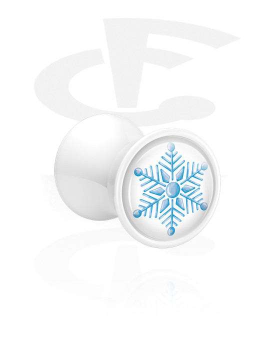 Kaksinkertainen flared-plugi (akryyli, valkoinen) kanssa lumihiutaledesign
