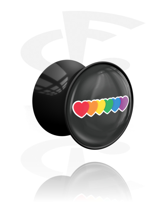 Kaksinkertainen flared-plugi (akryyli, musta) kanssa sydänmotiivi sateenkaaren väreissä