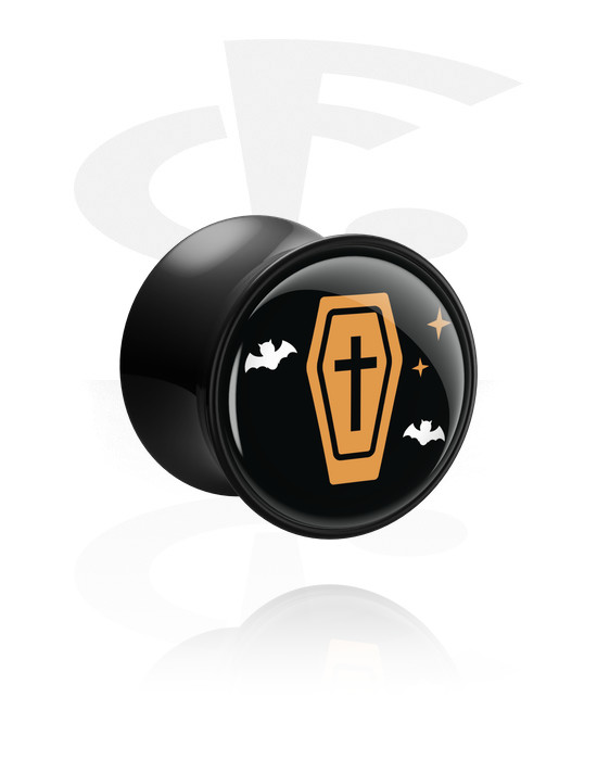 Kaksinkertainen flared-plugi (akryyli, musta) kanssa Halloween-motiivi "arkku"