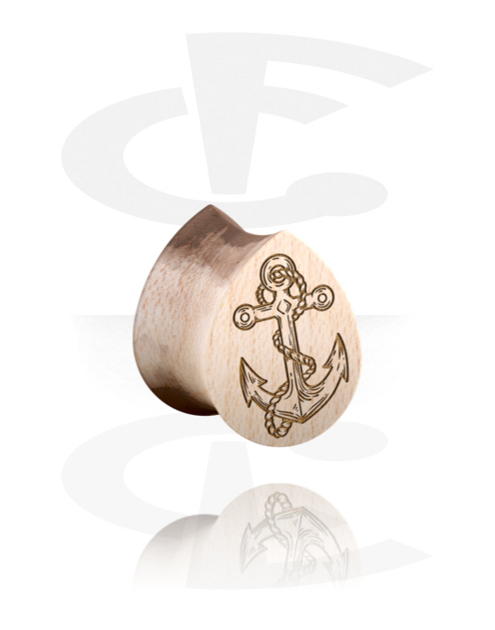 Pisaranmuotoinen kaksinkertainen flared-plugi (puu) kanssa ankkuri-laserkaiverrus