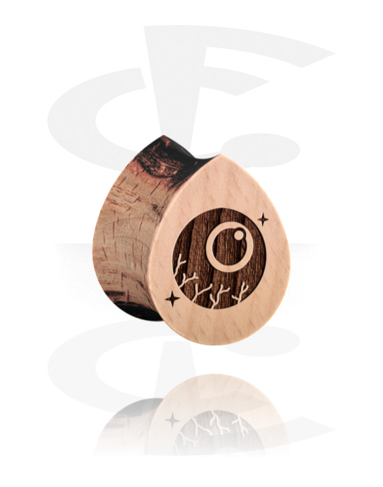 Pisaranmuotoinen kaksinkertainen flared-plugi (puu) kanssa "Halloween-design”-laserkaiverrus
