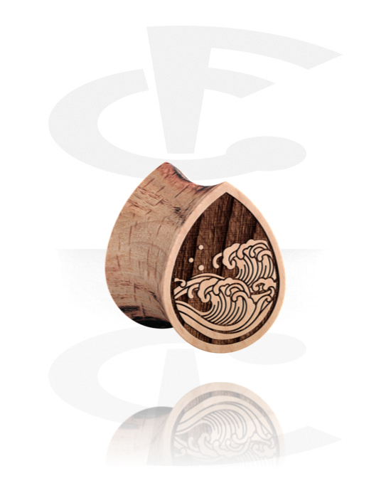 Pisaranmuotoinen kaksinkertainen flared-plugi (puu) kanssa vesiaallot-laserkaiverrus