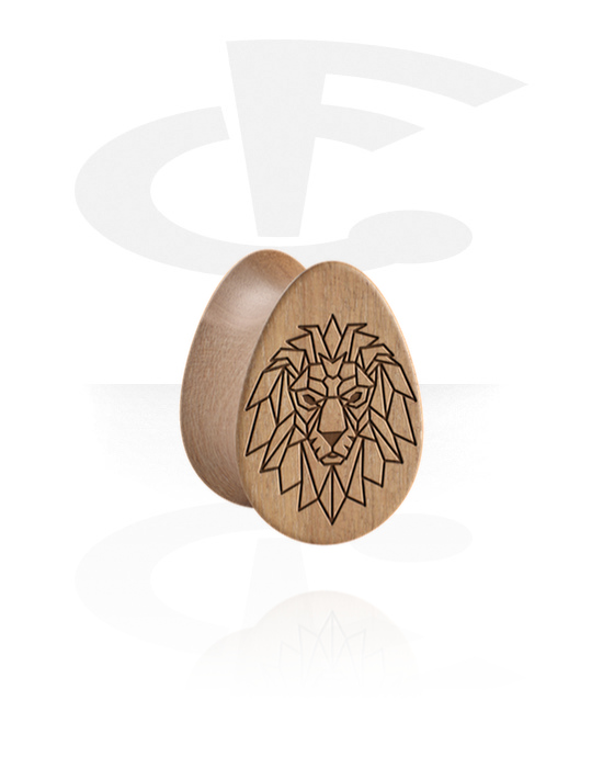 Pisaranmuotoinen kaksinkertainen flared-plugi (puu) kanssa leijona-laserkaiverrus