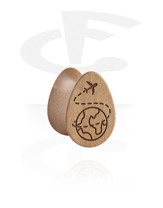 Pisaranmuotoinen kaksinkertainen flared-plugi (puu) kanssa lentokone-laserkaiverrus