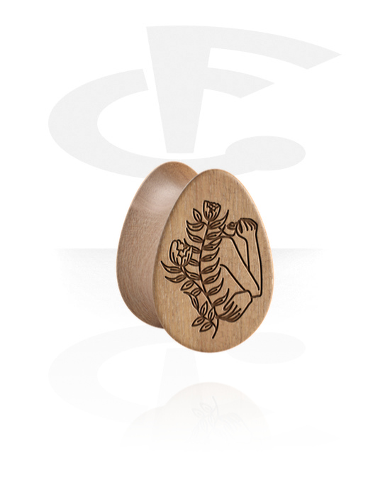 Pisaranmuotoinen kaksinkertainen flared-plugi (puu) kanssa kukat-laserkaiverrus