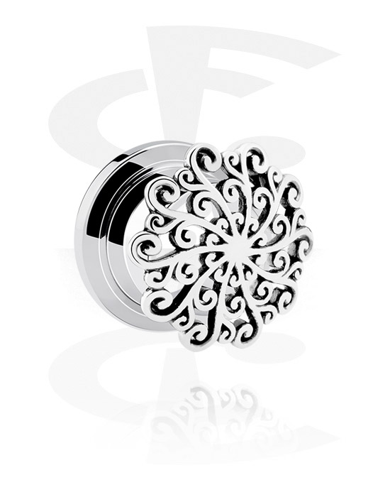 Ruuvattava tunneli (kirurginen teräs, hopea, kiiltävä pinta) kanssa ornamentti