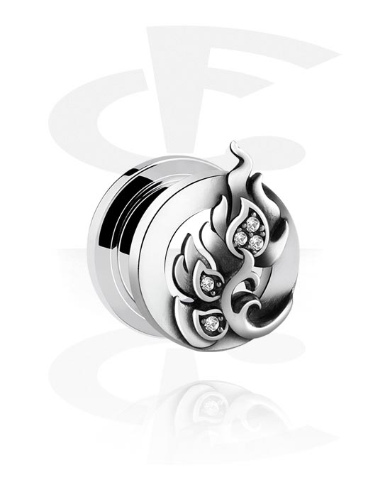 Ruuvattava tunneli (kirurginen teräs, hopea, kiiltävä pinta) kanssa kristallikivet