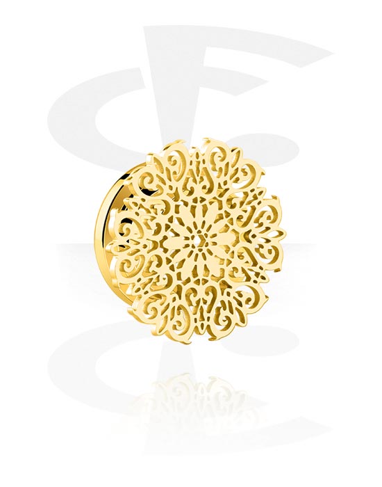 Ruuvattava tunneli (kirurginen teräs, kulta, kiiltävä pinta) kanssa mandala-lisäosa