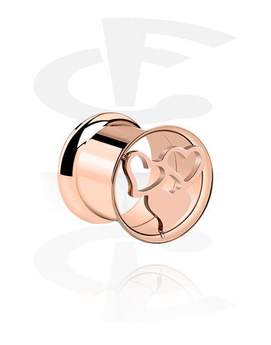 Kaksinkertainen flared-tunneli (kirurginen teräs, ruusukulta, kiiltävä pinta) kanssa sydändesign
