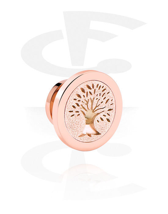 Ruuvattava tunneli (kirurginen teräs, ruusukulta, kiiltävä pinta) kanssa puudesign