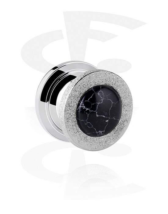 Ruuvattava tunneli (kirurginen teräs, hopea, kiiltävä pinta) kanssa timanttilook ja marmoridesign