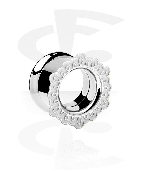Kaksinkertainen flared-tunneli (kirurginen teräs, hopea, kiiltävä pinta) kanssa vintagedesign