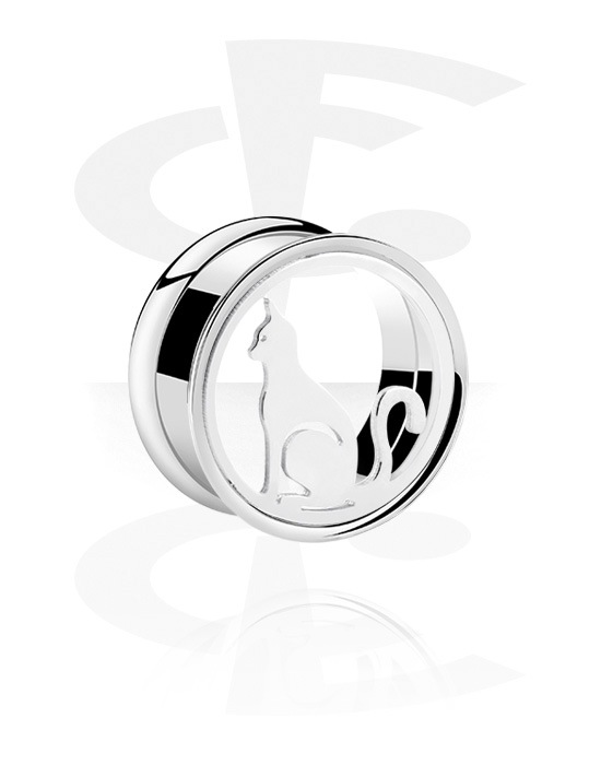 Kaksinkertainen flared-tunneli (kirurginen teräs, hopea, kiiltävä pinta) kanssa kissadesign