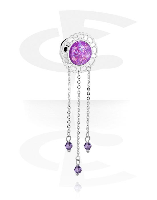 Kaksinkertainen flared-tunneli (kirurginen teräs, hopea, kiiltävä pinta) kanssa kimalleupotus eri väreissä ja ketju