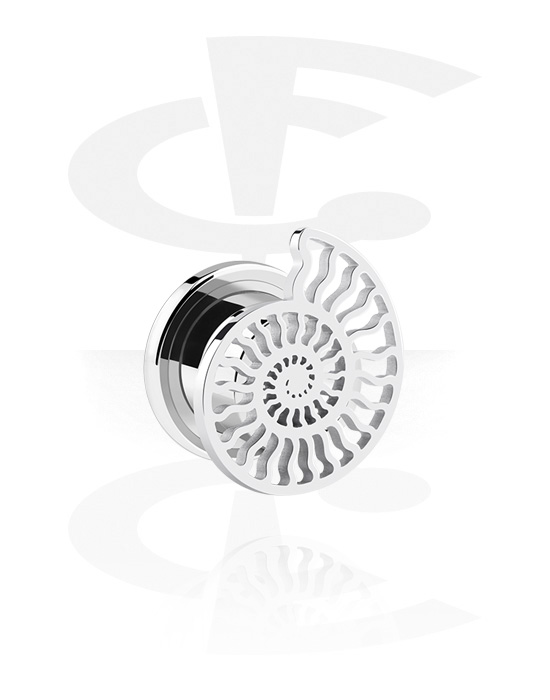 Ruuvattava tunneli (kirurginen teräs, hopea, kiiltävä pinta) kanssa nautilus-design