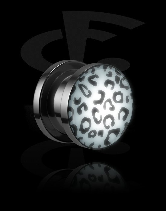 Ruuvattava tunneli (kirurginen teräs, hopea, kiiltävä pinta) kanssa LED-lisäosa ja Leijona-kuvio
