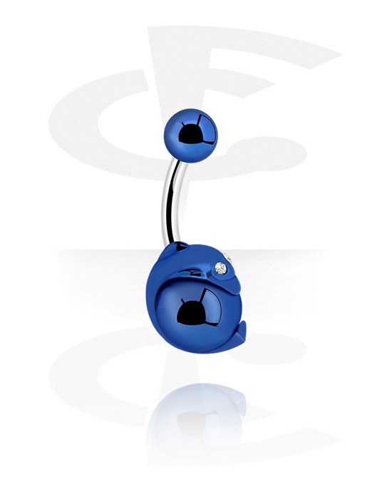 Naparengas (kirurginen teräs, hopea, kiiltävä pinta) kanssa anodisoitu pallo ja kristallikivi