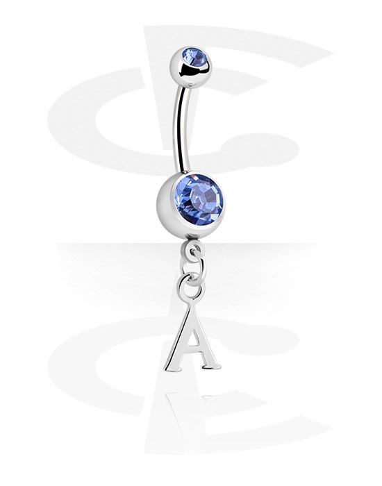 Naparengas (kirurginen teräs, hopea, kiiltävä pinta) kanssa riipus jossa A-kirjain ja kristallikivet