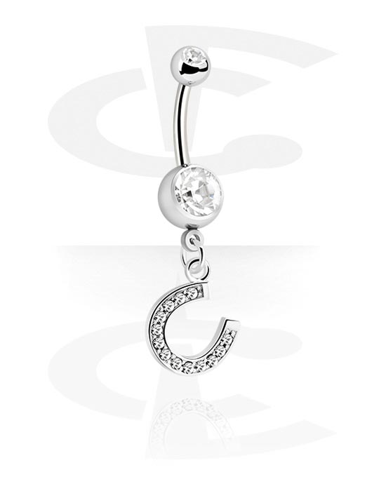 Naparengas (kirurginen teräs, hopea, kiiltävä pinta) kanssa hevosenkenkäriipus ja kristallikivet