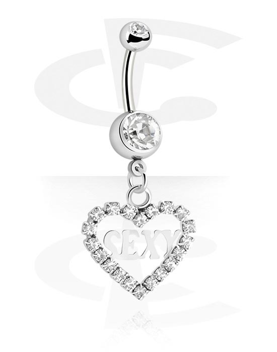 Naparengas (kirurginen teräs, hopea, kiiltävä pinta) kanssa sydänriipus ja kristallikivet