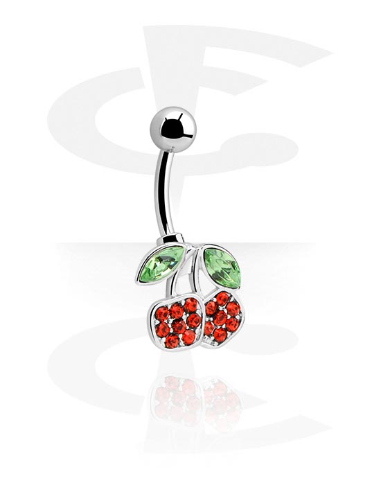 Naparengas (kirurginen teräs, hopea, kiiltävä pinta) kanssa kirsikkadesign ja kristallikivet