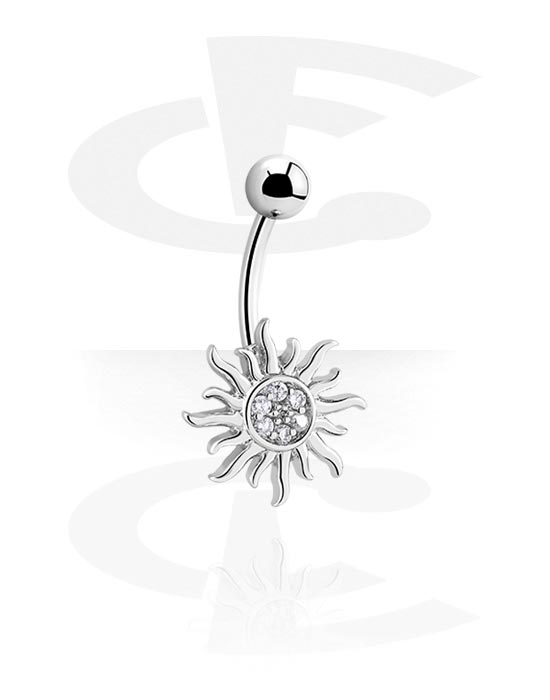 Naparengas (kirurginen teräs, hopea, kiiltävä pinta) kanssa aurinkodesign ja kristallikivet