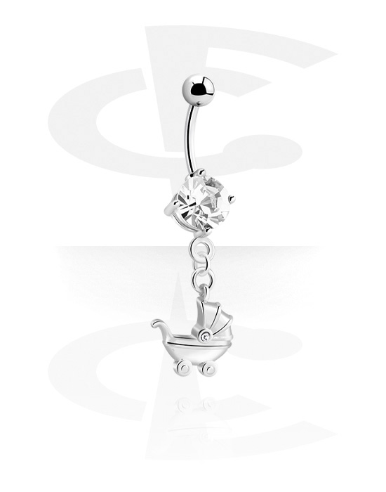 Naparengas (kirurginen teräs, hopea, kiiltävä pinta) kanssa riipus ja kristallikivet
