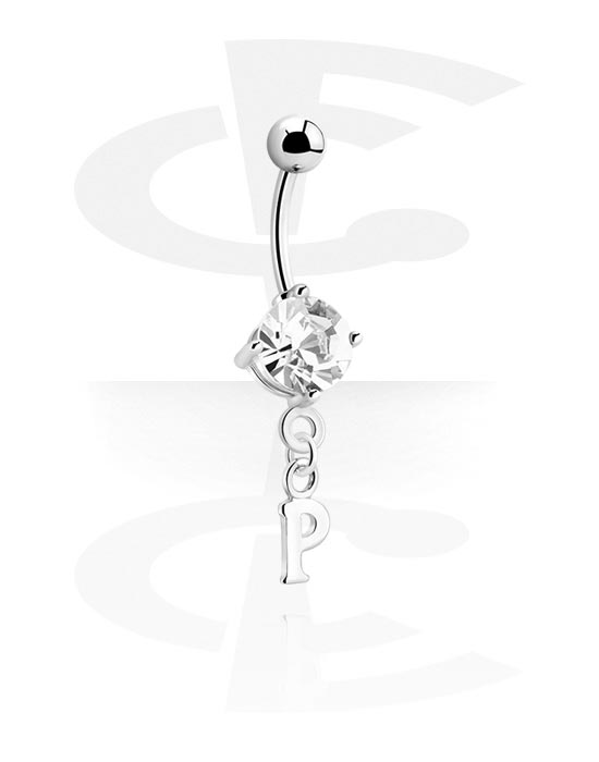 Naparengas (kirurginen teräs, hopea, kiiltävä pinta) kanssa riipus jossa P-kirjain