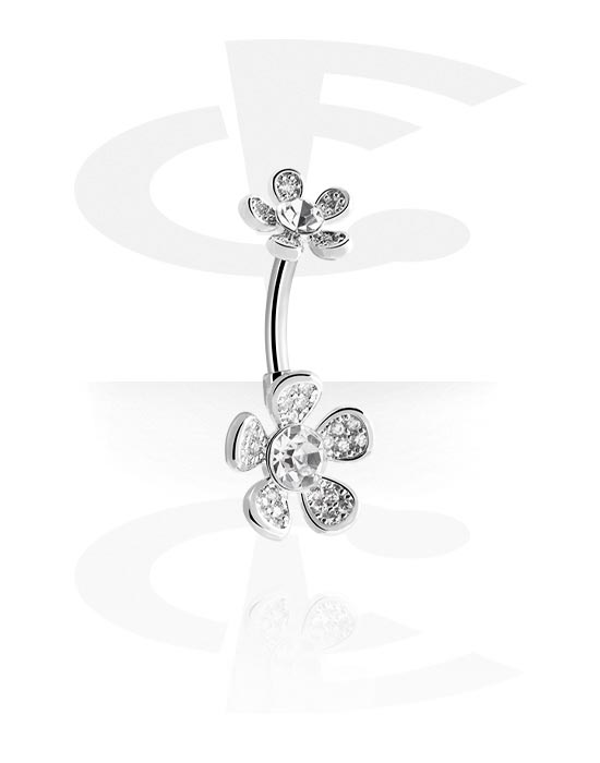 Naparengas (kirurginen teräs, hopea, kiiltävä pinta) kanssa kukkadesign ja kristallikivet
