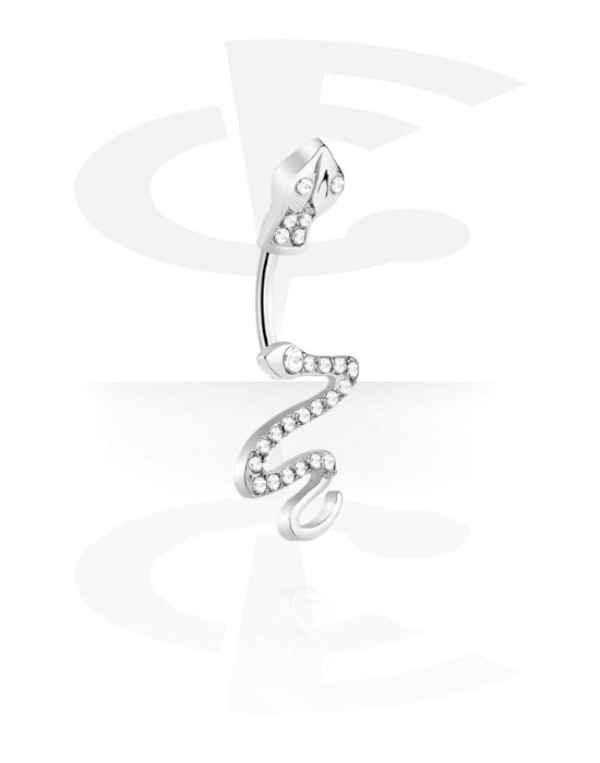 Naparengas (kirurginen teräs, hopea, kiiltävä pinta) kanssa käärmedesign ja kristallikivet