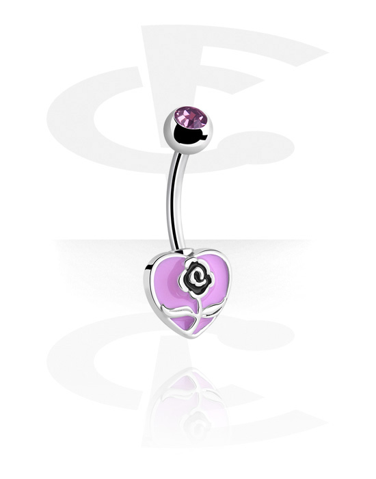 Naparengas (kirurginen teräs, hopea, kiiltävä pinta) kanssa sydändesign ja kristallikivet