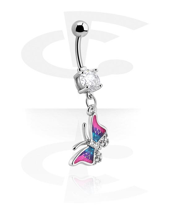Naparengas (kirurginen teräs, hopea, kiiltävä pinta) kanssa perhosriipus ja kristallikivet