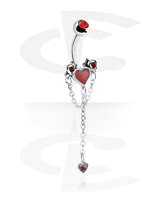 Naparengas (kirurginen teräs, hopea, kiiltävä pinta) kanssa kristallisydän ja ketju
