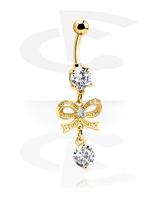 Naparengas (kirurginen teräs, kulta, kiiltävä pinta) kanssa rusettiriipus ja kristallikivet
