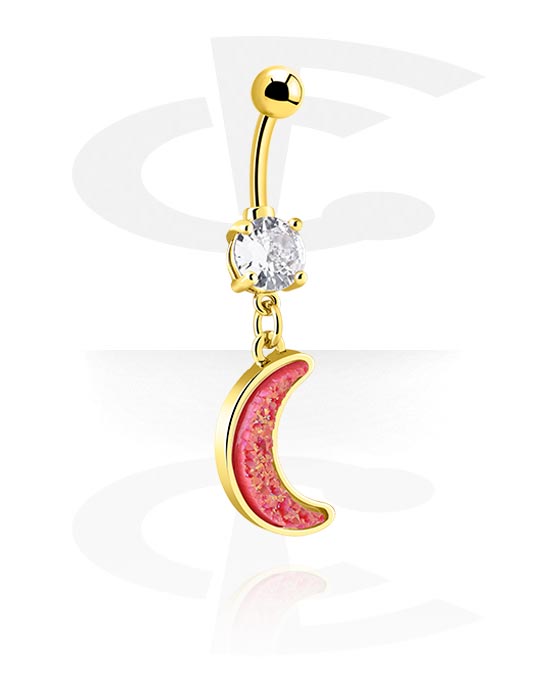 Naparengas (kirurginen teräs, kulta, kiiltävä pinta) kanssa puolikuuriipus ja kristallikivi