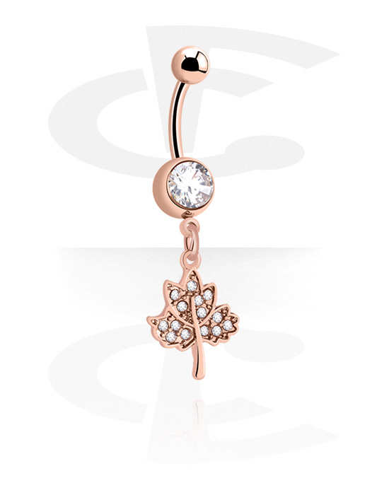 Naparengas (kirurginen teräs, ruusukulta, kiiltävä pinta) kanssa lehtiriipus ja kristallikivet