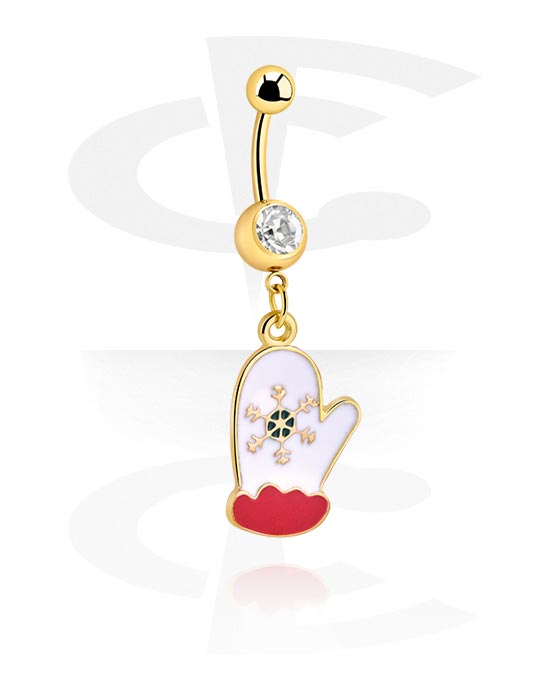 Naparengas (kirurginen teräs, kulta, kiiltävä pinta) kanssa Jouludesign ja kristallikivet