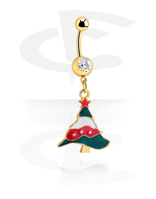 Naparengas (kirurginen teräs, kulta, kiiltävä pinta) kanssa Joulukuusidesign ja kristallikivet
